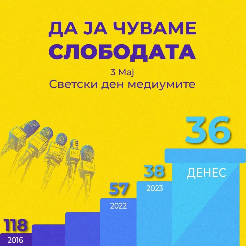 Создадовме услови за слобода на медиумите и за слобода на изразувањето и тоа дава резултати. Република Северна Македонија е рангирана на 36-то место на Индексот за слобода на медиумите за 2024 година на Репортери без граници, што е за две места подобро од 38-то место лани, истакнува вицепремиерот за европски прашања Бојан Маричиќ на „Фејсбук“, на Денот на слободата на медиумите.