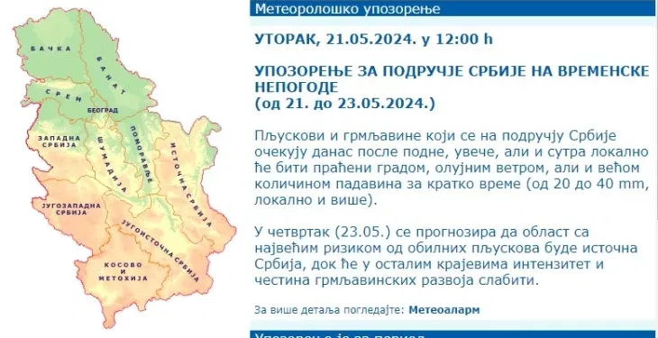 Дачиќ ги повика граѓаните да бидат крајно внимателни поради невремето во Србија, за кое предупреди и Републичкиот хидрометеоролошки завод.
