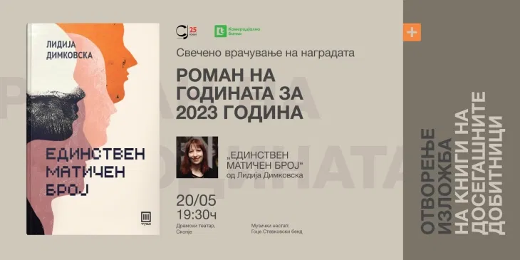 Во Драмскиот театар во Скопје вечер ќе се одржи свечено врачување на наградата „Роман на годината“ за 2023 година што ја доделува Фондацијата за унапредување и промоција на културните вредности „Славко Јаневски“.