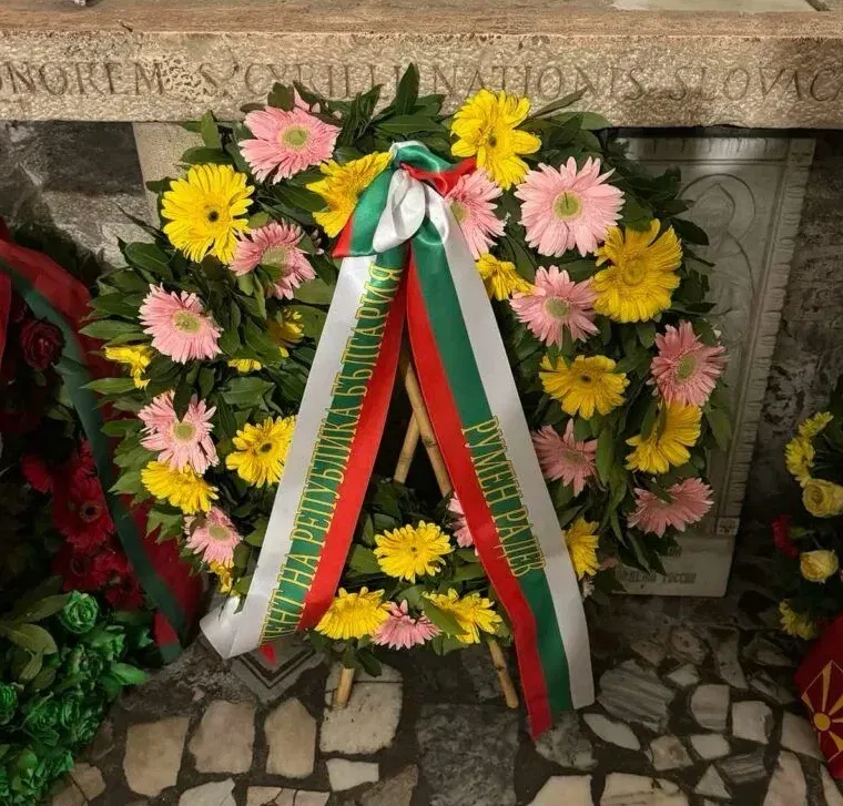 И бугарскиот претседател Румен Радев положи венец, но за разлика од неа, на венецот што го положи Радев има место за името на држават – јасно е наведено Република Бугарија.