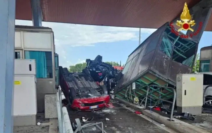 Сликите од местото на настанот покажуваат автомобили свртени на нивните покриви и урната наплатна рампа.
