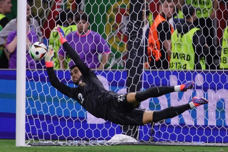 Голманот на Португалија, Диого Кошта синоќа одбрани три удари во пенал рулетот (3:0) против Словенија во осминафиналето на Евро 2024 против.