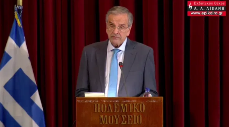 Поранешниот грчки премиер Самарас од редовите на Нова демократија, упати остри критики до неговиот сопартиец и актуелен претседател на Владата на Грција Кирјакос Мицотакис за низа теми во земјата, почнувајќи од изгласаниот закон за истополовите бракови, па сè до т.н. национални прашања, за кои рече дека Грција постојано е на мета на навреди и понижувања, „од Скопјаните, Албанците и секако „пријателите“ Турците“.