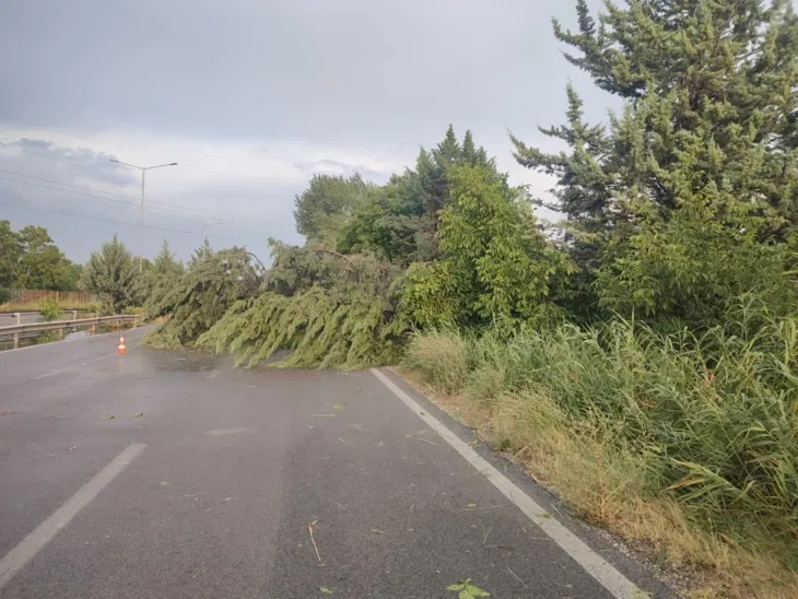 Во одредени делови на Скопје дел од улиците се поплавени, а поради паднати гранки од дрвја, на повеќе места има застој во сообраќајот.