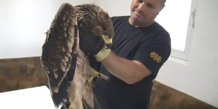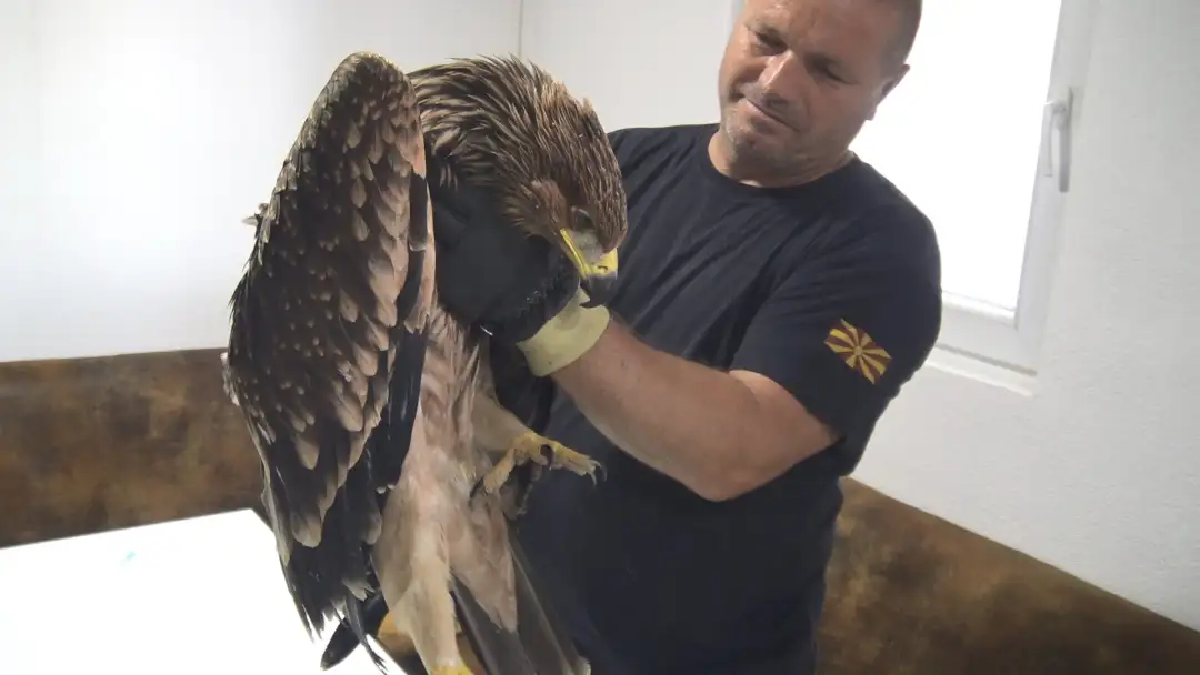 -Птицата ја најдовме заглавена во громобранската инсталација на објектот, беше дехидрирана и повредена, најверојатно како последица од пожарите во Осоговијата. Природните живеалишта на овие птици се уништени од огнената стихија и примерокот што го спасивме останал дезориентиран и не можел да се врати во своето гнездо. Повредениот орел веднаш го однесовме на ветеринар во Кочани кој го прегледа и му даде соодветна терапија со инфузија, а во текот на денот ќе го транспортираме до Зоолошката градина во Скопје, каде ќе има соодветно згрижување до целосното заздравување. Ќе бараме по подобрувањето на здравствената состојба, птицата да биде вратена во нејзината природна средина на Осоговските Планини, истакна пожарникарот Дејан Минов од ДПД – Кочани.