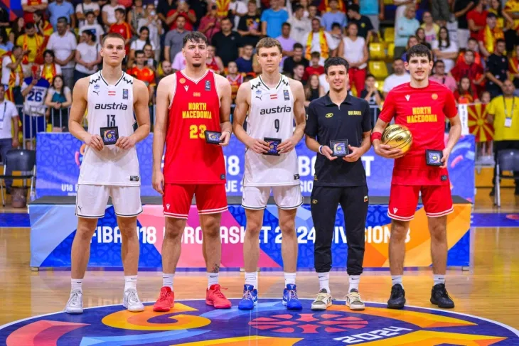 Во изборот на идеалната петорка на Европското првенството Б-дивизија во Скопје се најдоа и две имиња од македонската репрезентација.