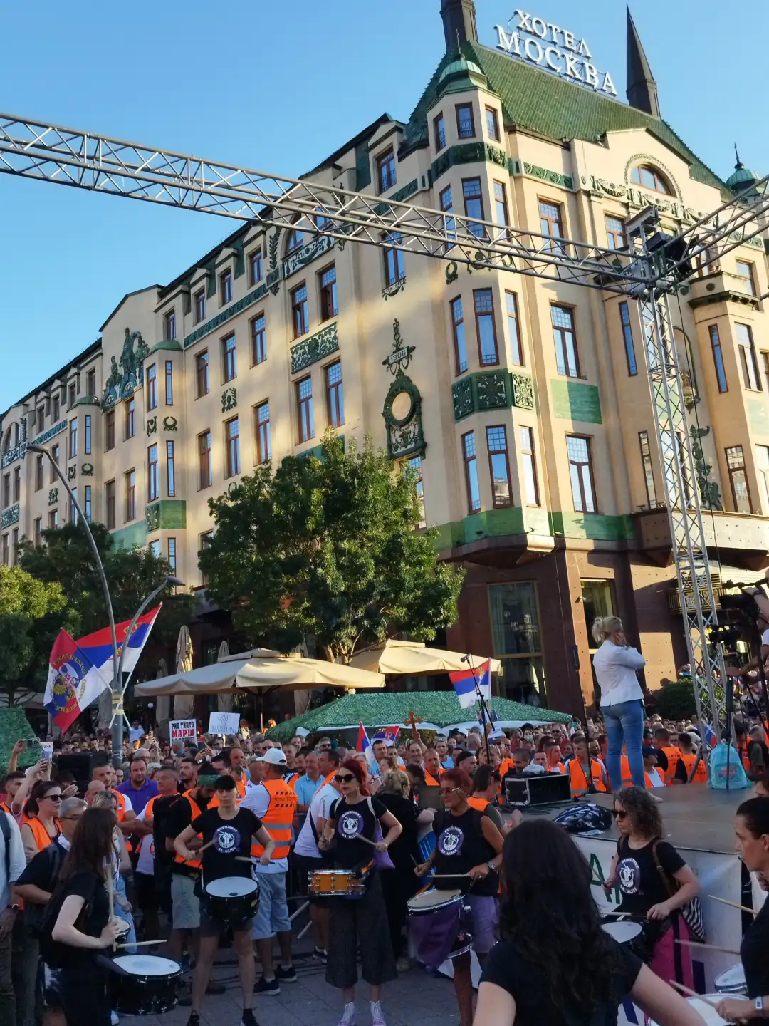 Во него се додава дека „и меѓу другото, по рецептот на обоените револуции, блокирањето на железничката станица Прокоп, најубавата во овој дел од светот и гордоста на сите граѓани на Србија, која ја изгради оваа власт“.