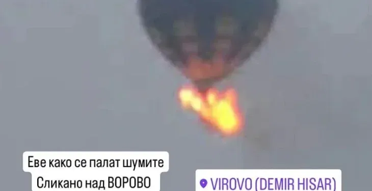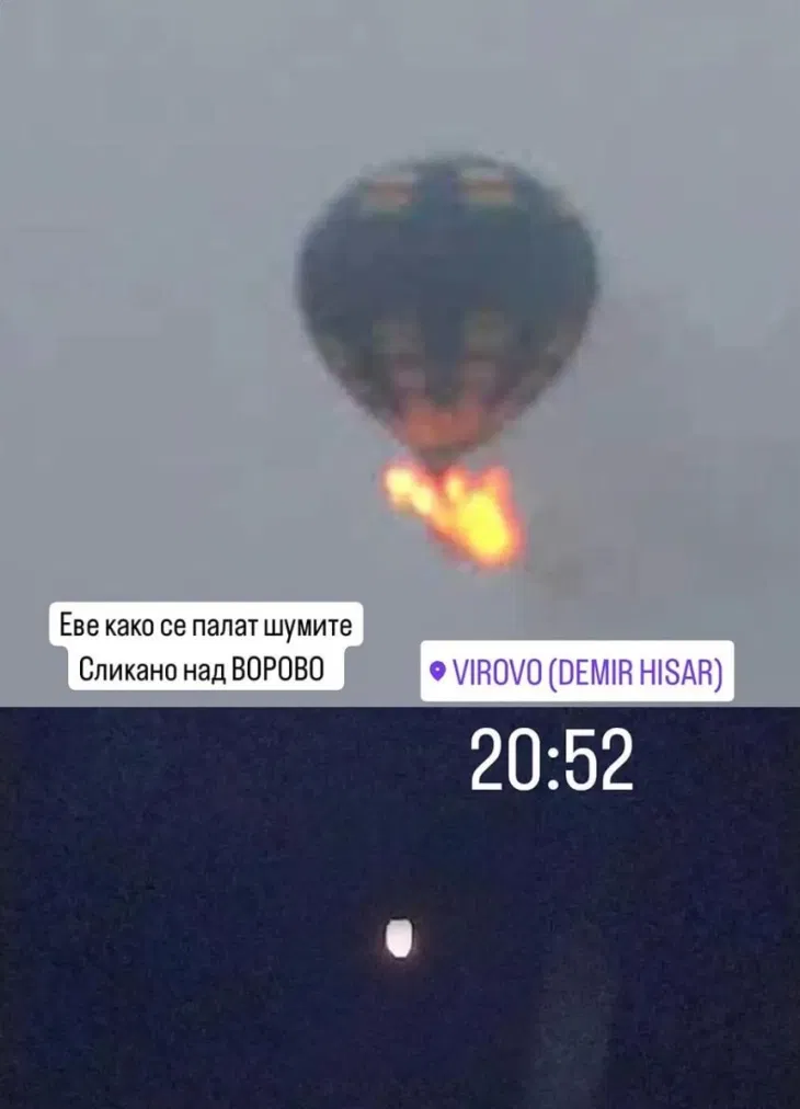 Во СВР Битола – Полициска станица Демир Хисар вчера било пријавено дека на околу 20 метри над продавницата во демирхисарско село Вирово, бил забележан балон со дијаметар од околу еден метар на кој имало инсталирано направа од која под притисок дувал оган за движење на балонот.
