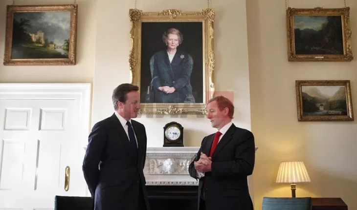 Портретот, нарачан од Гордон Браун во 2007 година, беше закачен во собата која Дејвид Камерон често ја нарекуваше работна соба на Тачер.