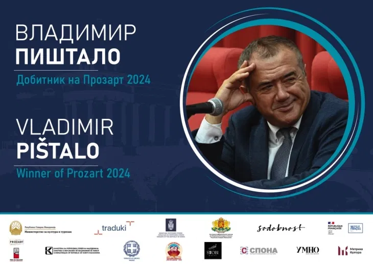 Српскиот писател Владимир Пиштало е годинешниот лауреат на наградата „Прозарт“, што Интернационалниот литературен фестивал „ПРО-ЗА Балкан“ по 12. пат ја доделува на истакнат автор за авторски придонес кон развојот на книжевноста на Балканот. Наградата ќе му биде доделена на Пиштало вечер за време на затворањето на фестивалот.