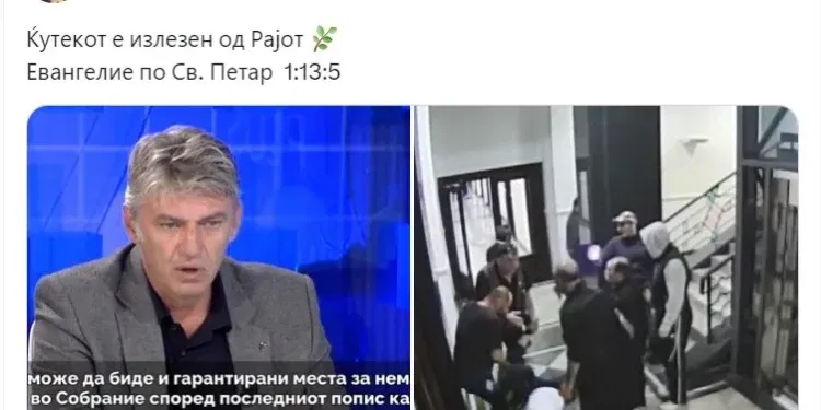 Профилот Марга@МКДПроЛет, познат по ултранационалистичките објави, а кој го поврзуваат со пропагандната мрежа блиска до ВМРО-ДПМНЕ, објави две фотографии – една од гостувањето на Зиадин Села од Алијанса за Албанците и од Европскиот фронт во емисијата „Клик плус“ на ТВ 21 и една од претепувањето во Собранието на 27 април 2017 година, придружени со пораката: „Ќутекот е излезен од Рајот“, Евангелие по Св. Петар 1:13:5. Мониторингот на ЦИВИЛ ја оценува оваа објава како експлицитен говор на омраза и директен повик на насилство.