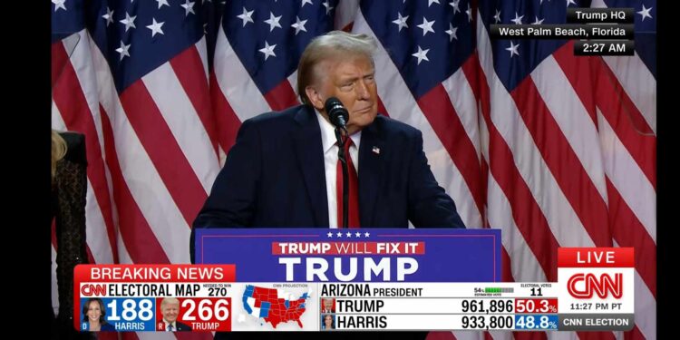 Победата во Пенсилванија го става Трамп на работ на враќање на претседателската функција. Ова е огромна победа за Доналд Трамп. Тој сега е на работ да ја врати Белата куќа, што би значело извонреден враќање, пренесува Би-би-си.
