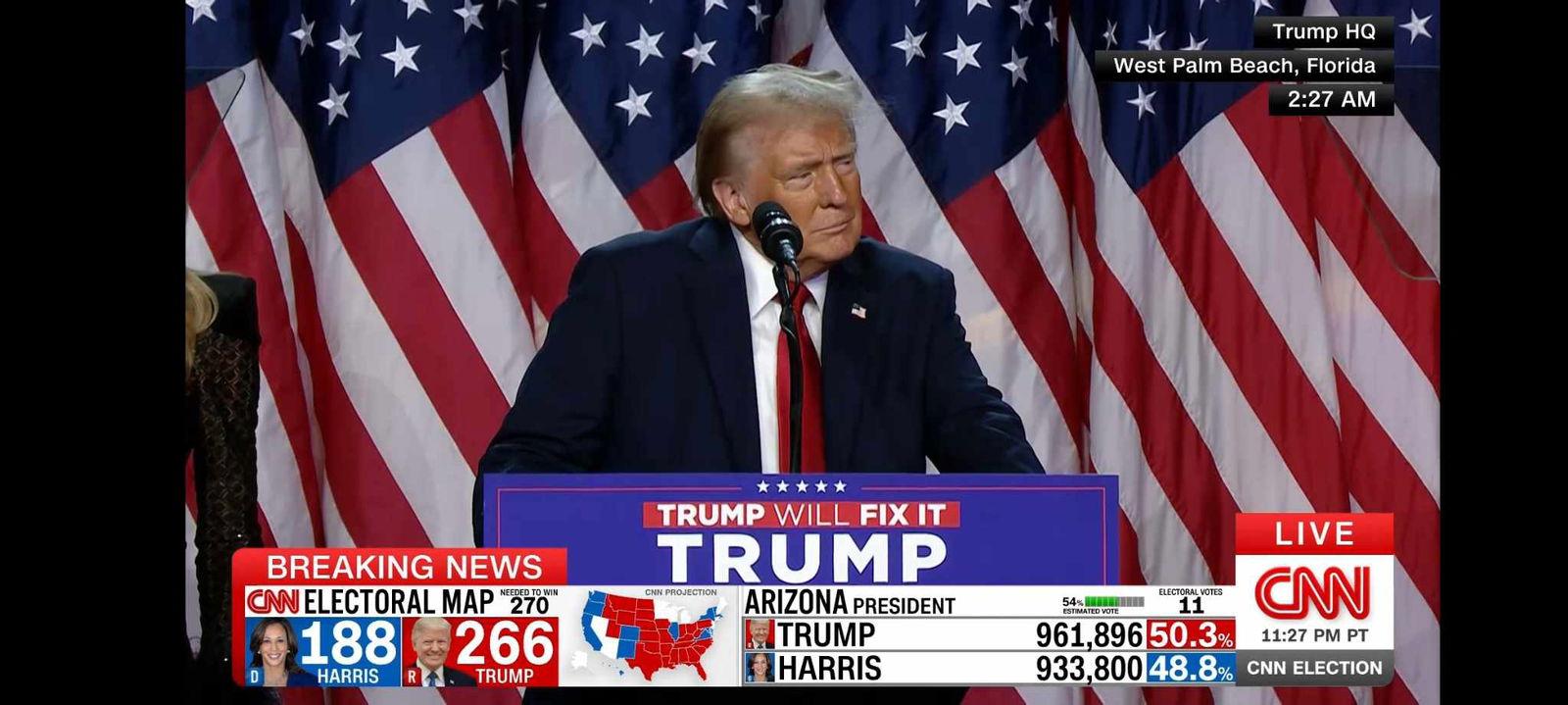 Трамп во моментот има 266 освоени електорални гласови, само 4 помалку од потребните 270, кои несомнено ќе ги освои.