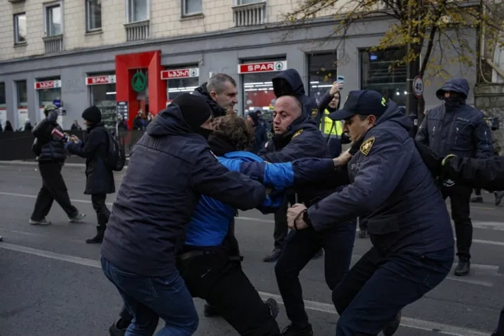 Полицијата во Тбилиси рано утринава растури шаторски камп што демонстрантите го поставија на главната улица во знак на протест поради резултатите од парламентарните избори минатиот месец и бараат ново гласање.