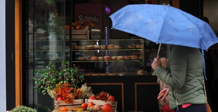 Времето денеска ќе биде претежно облачно со врнежи од дожд, наместа во западните делови пообилни (над 40 l/m2). Ќе дува засилен јужен ветер, кој во текот на ноќта ќе го промени правецот во северен (над 70 km/h). Во текот на ноќта врнежите од дожд најпрвин на планините ќе преминат во снег, а потоа и на некои пониски места и ќе се формира снежна покривка. Минималната температура ќе биде во интервал од -3 до 4, а максималната ќе достигне од 9 до 14 степени.