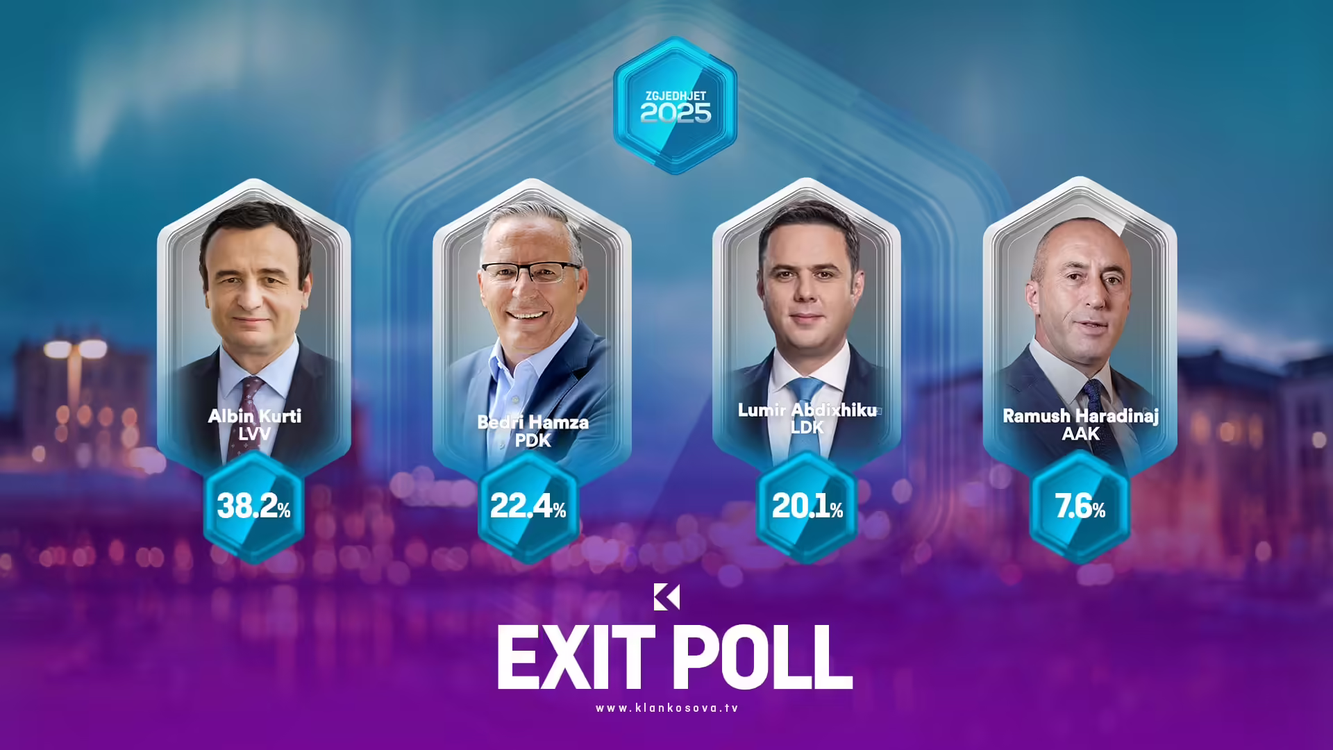 Според Хаџиу, Движењето Самоопределување на Албин Курти доби 37%, Демократската лига на Косово доби 20%, Демократската партија на Косово доби 23% а коалицијата ААК/НИСМА на Рамуш Харадинај доби 8%. Маргината на грешка на оваа излезна анкета не може да биде поголема од 1,5%, вели изворот.