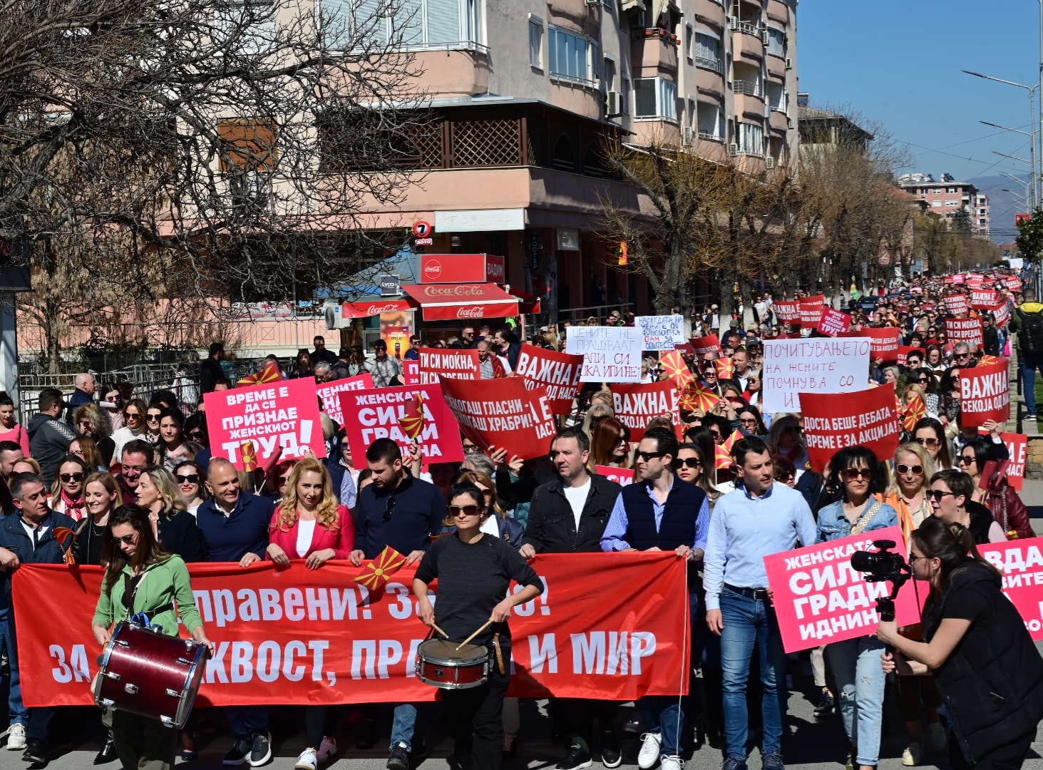 „Овој ден не треба да биде за лошите примери. Овој ден треба да биде за сите останати силно посветени на женската борба. Столб на Социјалдемократијата се и еднаквоста и правдата. Денеска маршираме за овие столбови. Маршираме за да кажеме НЕ на нееднаквоста, НЕ на дискриминацијата, НЕ на насилството“, порача претседателот на СДСМ, Венко Филипче.