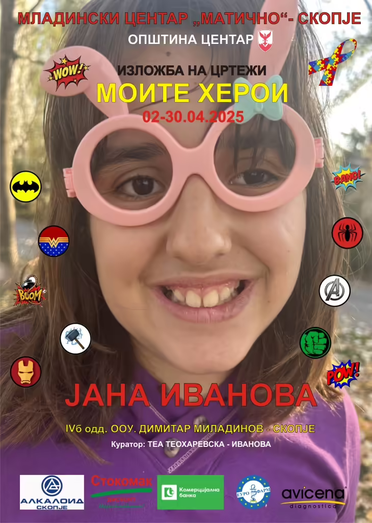 – Се разбира, најповеќе како нејзин родител, сметам дека таков настан ги истакнува воопшто уметничките тежнеења на децата во нашата земја, а конкретно, ја подигнува свеста за важноста на инклузијата и поддршка на лицата со спектар на аутизам. Со помош на поддршката на семејството, мојата Јана сака преку цртачката дарба да докаже дека и таа припаѓа на сите што ја опкружуваат и на свој начин, сака да пренесе порака за емпатија и прифаќање на таквите деца во нашето општество. На нејзинате цртежи, таа засега ги прикажува ликовите на нејзините херои, фигурите кои ги гледа во цртаните филмови, во долгометражните филмови или книгите и кои ги чувствува како нејзини пријатели. Затоа, се одлучивме ова нејзино прво ликовно претставување пред широката публика да го наречеме токму „Моите херои“, се наведува во писмената изјава на нејзината мајка Теа Иванова – Теохаревска, воедно и кураторот на изложбата.