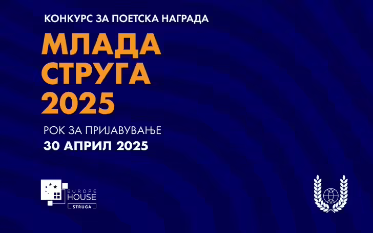 Фестивалот „Струшки вечери на поезијата“ (СВП), во соработка со Јуроп Хаус и со поддршка на Делегацијата на Европската унија во Северна Македонија распиша конкурс за поетската награда „Млада Струга“ 2025 за најдобра необјавена поетска збирка од млад автор-дебитант.