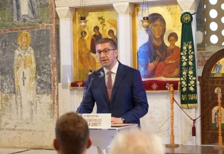 Како што информираше владината прес-служба, Мицкоски ќе се обрати на свечената академија „Светилник низ векови и за иднината“ што ќе се одржи во црквата Св. Софија.