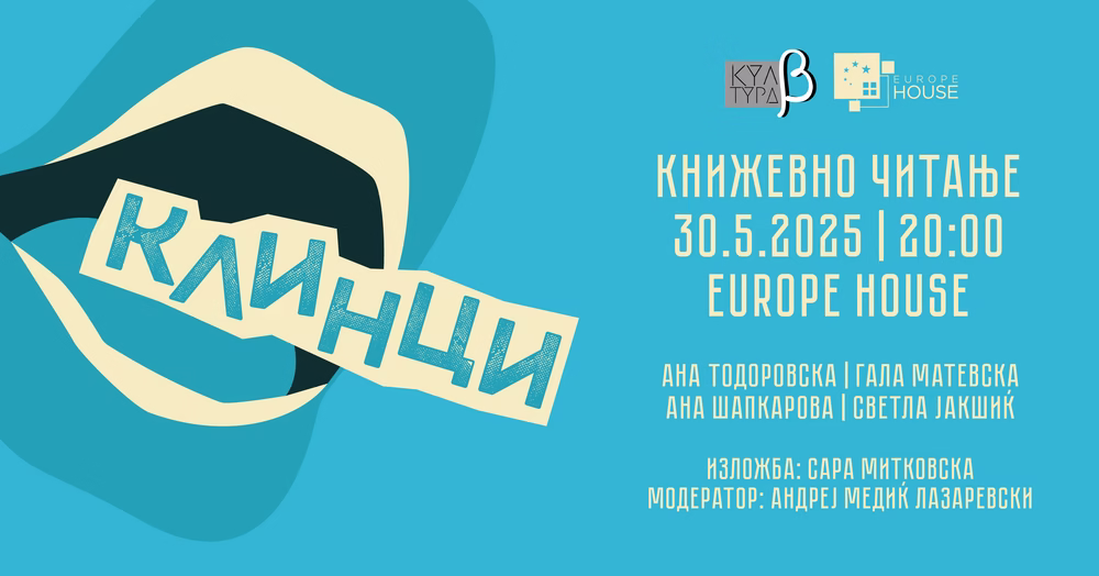 В петок (30 мај), во Europe House Скопје ќе се одржи ново издание на мултимедијалниот настан „Клинци“ во организација на младинската организација „Култура Бета“ и Europe House Скопје.