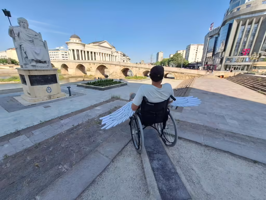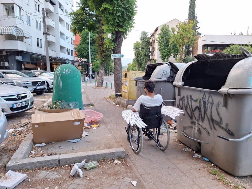 (ФОТО) „Ограничена мобилност“ – уметничка акција што ги открива секојдневните предизвици на лицата со попреченост во Скопје