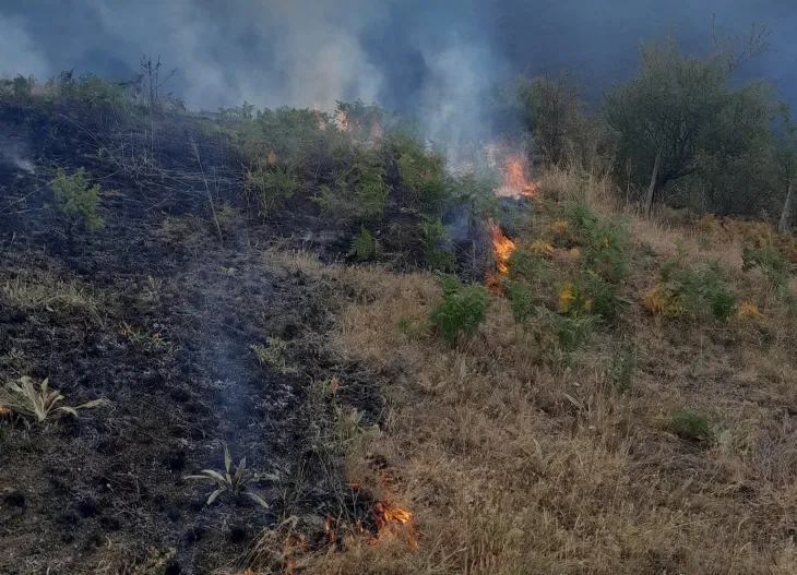 Пожарот започнал покрај магистралниот пат кон Котор, зафаќајќи ниска вегетација, а силниот ветер дополнително го отежнал гаснењето.