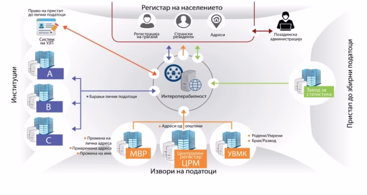 -Дополнително, постои и неусогласеност во однос  на барањата за интеграцијата и синхронизацијата на податоците од изворниците во реално време. Исто така, Регистарот за правните лица кои имаат пристап до ЦРН, не содржи целосни податоци за правните лица. Пристапот до податоците од ЦРН е  овозможен  единствено преку Платформата за интероперабилност, а институциите и субјектите  се должни да обезбедат усогласеност со  технолошките стандарди за да пристапат до податоците од ЦРН. Иако органите на државната управа, единиците на локалната самоуправа и другите државни органи основани согласно со Уставот и со закон, кои обезбедуваат услуги за остварување на правата и обврските од интерес и за потребите на населението во Република Северна Македонија се должни да ги користат податоците од Регистарот единствено заради остварување на своите законски утврдени надлежности или заради извршување на дејноста за која се регистрирани и имаат право на пристап до податоците од ЦРН, само 52 институции и 11 приватни компании се поврзани на платформата за интероперабилност што укажува на ограничена примена на системот и недоволна искористеност на неговиот капацитет, се вели во соопштението од ДЗР.
