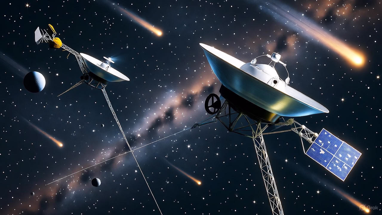 Пред речиси половина век, човештвото испрати два метални гласници во вселената, без цел да се вратат, без гаранција дека некој ќе ги чуе. Војаџер 1 и 2 тргнаа од Земјата во 1977 година, носејќи со себе звуци, слики и надеж. Денес, тие се најоддалечените творби на човекот – две светлечки зрнца изгубени во космосот, што сè уште го испраќаат својот шепот: „Сè уште сме тука.“