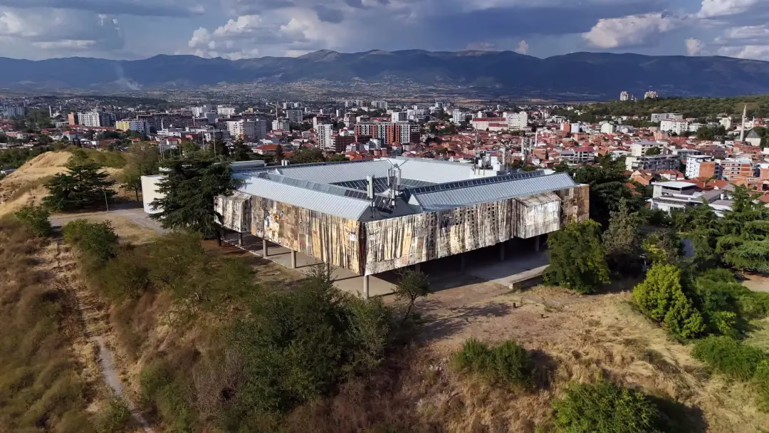 -Текстилната површина, составена од над 1.000 јутени вреќи кои ја обвиткуваат зградата, се секојдневно користени за транспорт на стоки и производи, првенствено во економиите на глобалниот југ, носејќи ги на себе историските траги од процесите на трудот, размената, реферирајќи на теми како глобализацијата и миграцијата, експлоатацијата и економската нееднаквост. Преку поврзување на јутените вреќи и нивното инсталирање на површината на зградата на музејот, делото истражува како историските настани се вградени во материјалноста на јутените вреќи и како преку оваа инсталација фасадата се преобразува во политичко огледало. Основен во 1964 година, МСУ – Скопје е создаден како платформа за уметничка размена, културна и меѓународна соработка. Изграден од донации после катастрофалниот скопски земјотрес во 1963 година, претставува материјално здание на принципот на солидарност, место кое го одразува ветувањето за подобро општество, посочуваат од МСУ.