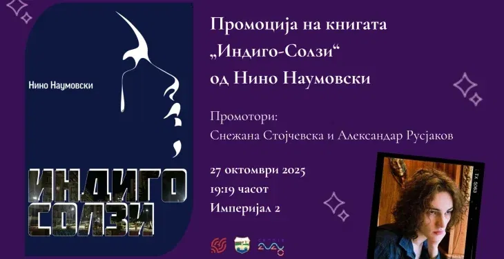 – Новата генерација македонски поети и поетеси треба да ја очекуваме кај оние родени во новиот милениум. Еден од нив е Нино Наумовски кој со својата збирка песни „Индиго солзи“ треба да ѝ се престави на македонскта читателска публика. Со само деветнаесет години, младиот Наумовски пушта врз нас дожд од индиго солзи преточени во зрели стихови и нè фрла во едно чудесно патување под чадорот на осаменоста, низ градот и мечтите на сопствените видувања на сето она што го опкружува, стои во соопштението.