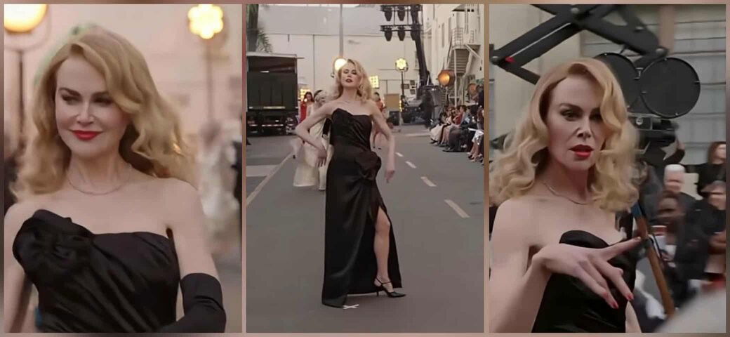 Кидман, оскаровка и октомвриска насловна ѕвезда на Vogue, ја започна вечерта со импресивна интерпретација на песната „Put the Blame on Mame“ – славниот број на Рита Хејворт од филмот Gilda (1946). Настапот, снимен во црно-бела техника со танчери во смокинзи и винтиџ осветлување, беше совршен омаж на златното доба на Холивуд.