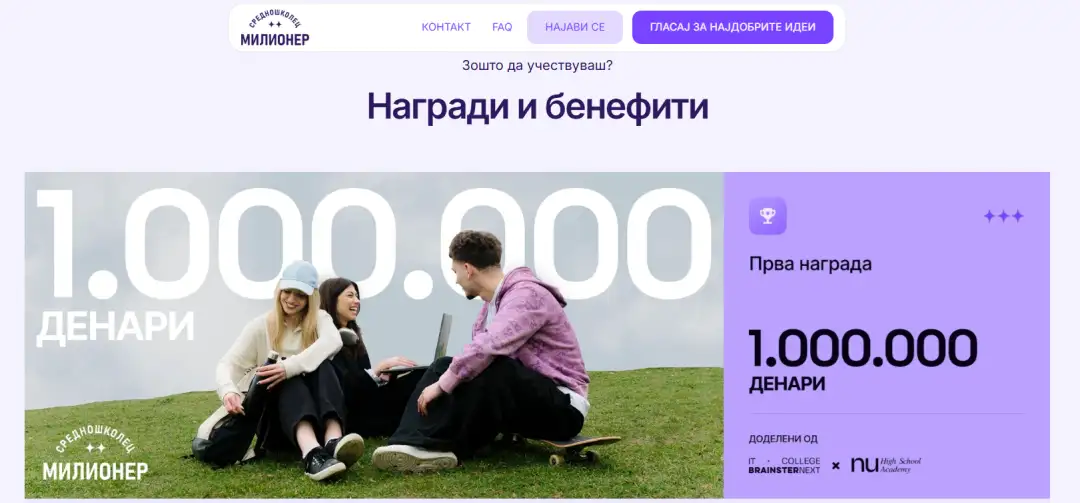 Преку натпреварот, Бреинстер некст колеџот и НУ Академиите за талентирани средношколци создаваат најголема платформа за младинско претприемништво во земјата, со мисија да ги подготват средношколците за идни професии и да им покажат дека идеите можат да станат реалност – со вистинска поддршка, знаење и труд.