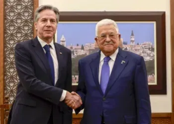 Американскиот државен секретар Ентони Блинкен при денешната посета на Рамала, како дел од напорите за прекин на војната во Газа, ...