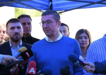 Премиерот Христијан Мицкоски заедно со министерите за надворешни работи и трговија Тимчо Муцунски и за европски прашања Орхан Муртезани од ...