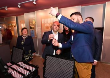 Премиерот Димитар Ковачевски, министерката за култура, Бисера Костадиновска Стојчевска и директорката на Институтот за македонски јазик „Крсте Мисирков“, Елена Грујоска ...