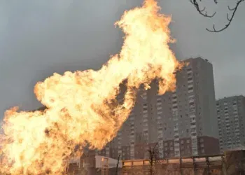 Во областа Основјански во градот Харкив, пожарникарите гаснеа пожар од големи размери што избувна како резултат на напад со руски ...