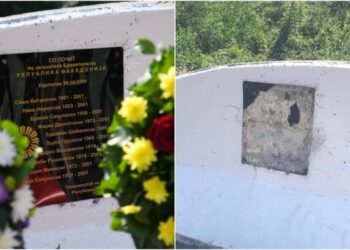 Оштетена спомен плочата на загинатите бранители кај „Карпалак“