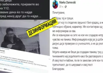Текстот што се споделува на социјалните мрежи се повикува на објава од профил на Фејсбук, којашто подоцна е избришана од самиот корисник ...