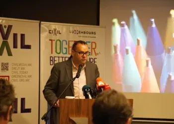 Почесниот конзул на Големото Војводство Луксембург, Петар Арсовски, во обраќањето на конференцијата „Односи меѓу заедниците: Перцепции, надежи и стравови, предизвици ...