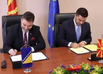 Министерот за економија Крешник Бектеши и министерот за надворешна трговија и економски односи на Босна и Херцеговина, Сташа Кошарац денеска ...