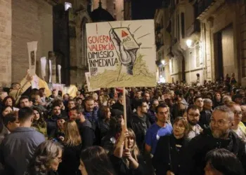 Околу 100.000 луѓе синоќа повторно излегоа на улиците на шпанскиот град Валенсија за да го осудат лошото управување на владата ...