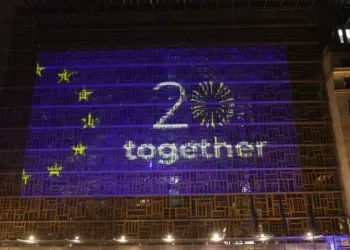 Зградата на Еврокомисијата осветлена во чест на 20-годишнината од големото проширување на ЕУ